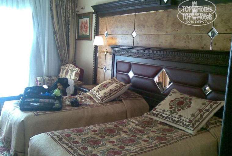 Тер-я зеленая. ухоженная, свой собственный пляж, спирт напитки не разбавляют, очень много разнообразной еды, номера просторные очень красивые, вообще в отеле много зеркал, подвестных люстр(как в средневековом замке )и ваз с цветами, производит впечатление, хороший закрытый бассейн с джакузи массаж, уборка каждый день, персонал приветливый, правда анимации нет, а если она и есть то ее не слышно)))как то не для детей особо, в основном молодые пары