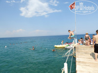 Плавали с пирса, дети ныряли, так что про вход в море ничего не могу сказать. Море чистое, виды красивые.