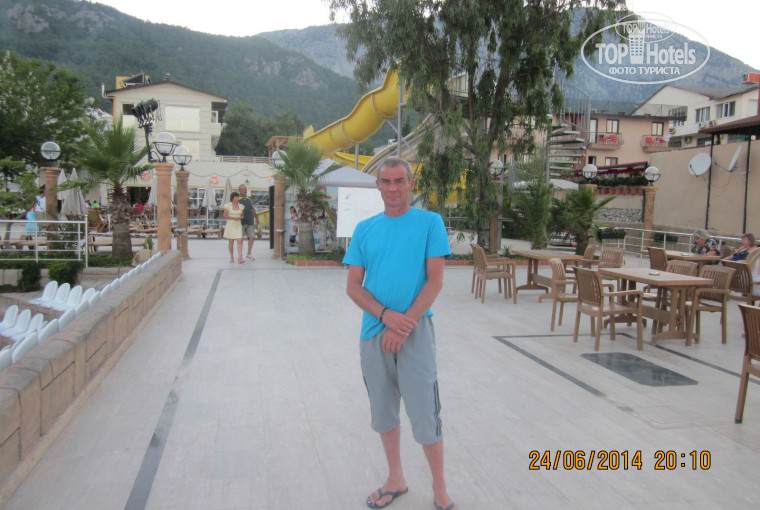 Мы с мужем отдыхали в отеле с 17 по 25 июня. По прибытии в отель нас заселили сразу в номер, притом девушка на рецепции прислушалась к нашему пожеланию жить повыше. Номер оказался уютным и соответствовал заявленным в прайсе условиям. Окна номера выходили на соседний отель, на центральную улицу и прекрасный вид на горы.