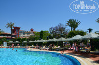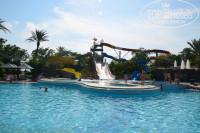 ТЕРРИТОРИЯ: Территория большая, но так как много места занимают футбольное поле и теннисные корты, то погулять особо негде. Два больших бассейна, один из них с довольно приличными горками, которые работали точно по расписанию, так что тут нареканий нет. Возле бассейна с лежаками тоже проблем особых не было, хотя не всегда можно было найти то количество (а именно 5) которое требовалось на нашу компанию. Еще что очень понравилось, это полянка с гамаками, хотя некоторые мамаши в обед укладывали там своих деток спать, а занимали их аж с утра и поэтому с утра и до вечера некоторые гамаки просто простаивали. А еще очень милыми были цветы перед главным входом посаженные в большие разноцветные мусорные контейнеры на колесиках. . Цветов много, но когда мы приехали они еще не все цвели, так что было сначала лысовато, но через пару дней начали распускаться то там, то здесь. В спа салоне работают очень приветливые люди. Косметолог мне очень понравилась. Тренажерный зал очень приличный. И тренажеры вполне современные, не особо потрепанные, есть коврики для занятий фитнесом , мячи. Тренажеры работали все кроме одной дорожки. Кондиционер сразу включали как только мы в зал приходили. В баре у бассейна немного жарковато. Напитки алкогольные описать не могу, не пью. А безалкогольные были : айран, разведенные типа Юпи, молочный коктейль, кола, спрайт , фанта. И что самое странное турецкий чай в турецких симпатичных стаканчиках был только в лобби баре. Фреш апельсиновый стаканчик 3 евро. Вроде все.