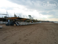 ПЛЯЖ: Пляж большой, лежаков аж в четыре ряда. За все время отдыха не было чтобы мы пришли, а мест нет. Хотя многие занимали полотенцами с раннего утра и на весь день их там оставляли. Информация для дисциплинированных туристов- там есть надпись, что занимать лежаки заранее нельзя! Матрасы ( или как эти мягкие штуки называются) есть разные. Есть совершенно новенькие, есть старенькие , но чистенькие, а есть с какой-то черной не то плесенью, не то сажей (хотя откуда ей взяться на пляже?). короче не очень приятно. Курить на пляже запрещено, но для очень курящих, у которых уши пухнут, есть пара беседок с вывеской – место для курения. Хотя наши туристы везде чувствуют себя как дома и некоторые дядечки не утруждались отрыванием своей п..ы от лежака и курили среди бегающих детей.