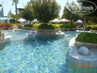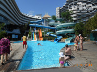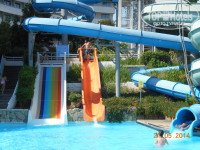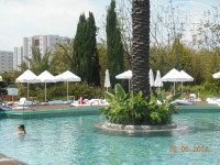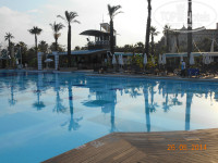 Бассейны большие, чистые, вокруг бассейнов деревянные настилы, поэтому не скользко. Лежаков много думаю, проблем с лежаками не бывает. Есть бассейн с 4 горками. В зоне релакс бассейна также есть 3 джакузи и платные-павильоны шатры. Сами мы у бассейна не отдыхали, всегда на пляже.