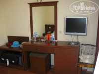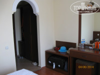 Номеров свободных не было, поэтому пришлось подождать. В 12 часов номера потихоньку стали освобождаться. И для нас номер освободился. Правда, оказался он в дополнительном корпусе, через дорогу от основного. Мы поначалу расстроились. Но расстройство наше длилось только пять минут. Корпус этот значительно новее. Он двухэтажный и в нём всего 14 номеров. Там тихо и спокойно. И номер отличный достался! Мебель новая. Всё, что необходимо, имеется. Всё чистенько и ухожено. Телевизор плоский на стене, вроде три русских канала есть. Сантехника в исправном состоянии, душевая кабинка вместо ванны, что очень даже удобно. Мыло, шампунь, гель для душа, кондиционер для волос и шапочка для душа – всё это есть. По приезду одна 1,5 литровая бутылка воды. На потом набирали из кулера на первом этаже. А еще тапочки домашние в номере есть – прикольно. Размещением остались очень довольны!