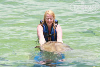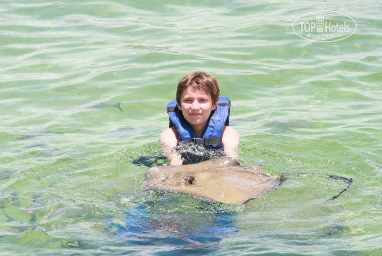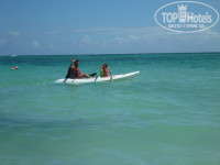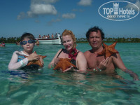 Пребывали в этом отеле с 24.05 по 8.06.14г. Заселение прошло очень быстро буквально в течении 20минут. Поселили в 8й корпус, номера очень чистенькие все работало, сантехника вся новая ничего не ломалось и не текло. Немного было сыровато, но мы жили на первом этаже, может поэтому. Территория не очень большая(опять-же это по Доминиканским меркам) но очень ухоженная, вся утопает в зелени. По территории свободно гуляют дивной красоты павлины и очень миленькие уточки с малюсенькими утятками. Пляж большой, чистый лежаков много на всех хватало. Океан очень спокойный(что меня немного разочаровало хотелось волн, все таки океан).Ездили на экскурсии на о.Саона, пляж Макао, купание с акулами. Пляж Макао поразил своей красотой и мощью океана, мы потом в течение всего отдыха часто туда ездили уже самостоятельно, сначало было страшновато пугали гаитянами, но как оказалось это полная ерунда, добродушней людей как доминиканцы и гаитяне трудно найти. Попробуйте оставить вещи без присмотра с телефонами и фотиком на наших российских пляжах через 5мин. вы их не найдете, а тут мы часами из океана не вылазили и никто к нашим вещам даже не приблизился. Обязательно съездите на о.Саона Карибское море впечатляет, там же заказывали лобстера,вкусяшка ммм...! Купание с акулами оставило не изгладимое впечатление, не было страшно до тех пор пока эта махина не проплывает рядом с тобой, а потом еще инструктор говорит, что ее надо взять на руки для фото и руки надо держать над водой(под водой нельзя может укусить) у меня началась настоящая паника, но потом как-то взяла себя в руки и акулу тоже и все прошло хорошо, но впечатления останутся на всю жизнь уххх!!!!!.Ездили на Атлантическую рыбалку, ребенок поймал Дораду, а муж Барракуду радости не было предела. Таких волн как в открытом Атлантическом океане я видела первый раз, было такое впечатление, что вот-вот перевернемся, адреналин зашкаливал. Теперь про магазины мы в местных типа"Надежда туриста" и т.д ничего не покупали как оказалось там все дорого, нам повезло и мы случайно узнали о супермаркете "Иберия" это магазин для местных, буквально в 10мин. от отеля, например если в магазине на пляже ром стоит 12$ то в "Иберии" 5$-6$ и так все в два раза дешевле. Так что вам решать. Впечатления об отдыхе остались самые положительные, обязательно сюда вернемся, даже сейчас пишу и слезы наворачиваются хочу обратно. Мы тебя любим такая близкая и такая далекая, ставшая совсем родной наша ЛЮБИМАЯ ДОМИНИКАНА!!!