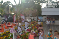 Питание в отеле на высшем уровне. Это какая-то бесконечная "обжираловка". Завтрак переходит в поздний завтрак, далее в ранний обед, в обед, полдник, ужин и поздний ужин. Повара и официанты трудятся просто не покладая рук. Все так вкусно, аппетитно. Здесь свежая, прямо при тебе пожаренная речная рыбка. (Форель, Дорадо) Гриль из курочки, люля из говядины. Обожаемые мной овощи гриль (перчик, баклажан, помидорчик, кабачок), и многое другое. На завтрак великолепные пончики, которые тоже готовятся прямо при тебе. Яичница типа "пашот". Разнообразные фрукты: клубника, черешня, персики, абрикосы, арбузы. Все свежее и вкусное. Вообще персонал в отеле работает замечательно. Официанты, горничные, уборщики на пляже: чистят моют убирают, никто ни за что не упрекает. За 10 дней нашего прибывания горничная каждый день у нас убиралась ( мы уже даже отказывались от уборки), нам 3 раза поменяли белье, и по-моему через день меняли полотенца.