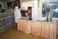 Отдыхали за границей впервые, поэтому и выбирали отдых эконом класса. Ездила с мамой, дочкой (2г.10м.), племянником (8 лет) и его бабушкой. Так как нашу компанию хотели поселить на разных этажах первого корпуса, а мы хотели жить все вместе, то в итоге нас поселили в один номер (двухкомнатный), НО во второй корпус. Номер - состояния ужасного, вместо душевой - сидячая ванна. Ремонт в номерах давно не делался, а если и проводился, то "спустя рукава", так как все неаккуратно, некачественно. И в столовой (ну по другому это заведение не назовешь)) ремонт не очень, скатерти с пятнами не отстиранными, салфетницы пласмаски - от пыли грязные, ну т.е. их помыли, но уже все въелось и не отмывается. По питанию все отлично, на убой, голодными не были, если бы не номер в старом корпусе, то вообще была бы красота. Из фруктов, правда, только апельсины, напитки - чай, кофе и растворимые напитки типо Зуко, Юпи, газировка, ну еще красное и белое вино и пиво. Еда отменная, все вкусно, много зелени, овощей, молочки (простокваша, и тому подобное), сыр 4-5 видов. Еда, правда однообразная, но т.к. горячее не одного вида подается, а два-три, то можно и побаловать разнообразием себя. В общем питанию по 5ти бальной шкале - 5ка. С Собой можно брать напитки, фрукты на пляж, в номер, по крайней мере мы брали и никто ничего не сказал. Персонал приветлив, относились очень хорошо. Уборка в номерах как таковая отсутствовала, т.е. на полу и песок и постель не менялась, хотя лебедей по началу крутили, розы лепестки сыпали. В самом начале много в туалет положили туалет. бумагу, и всё. Такого как гель, шампунь, мыло - в номере не было. И как во многих отзывах пишут от отеля до пляжа идти буквально 2 минуты, в этом плане расположение отеля очень удачно, в этом он и выигрывает. Сам пляж хороший, немного, грязноватый, но море чистое. Рекомендую отель для эконом отдыха, чтобы просто было где вещи оставить, переночевать, ну и вкусно покушать.