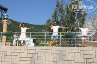 -анимация более менее,мини-диско вечером,в мини-клубе телевизор с мультиками на иностранном языке,хотя в отеле практически все русские!! Один аниматор на всё и с детками,и аквааэробика,и зарядка и вечернее шоу,и потом на дискотеку ночную.Вообще в отеле три аниматора.