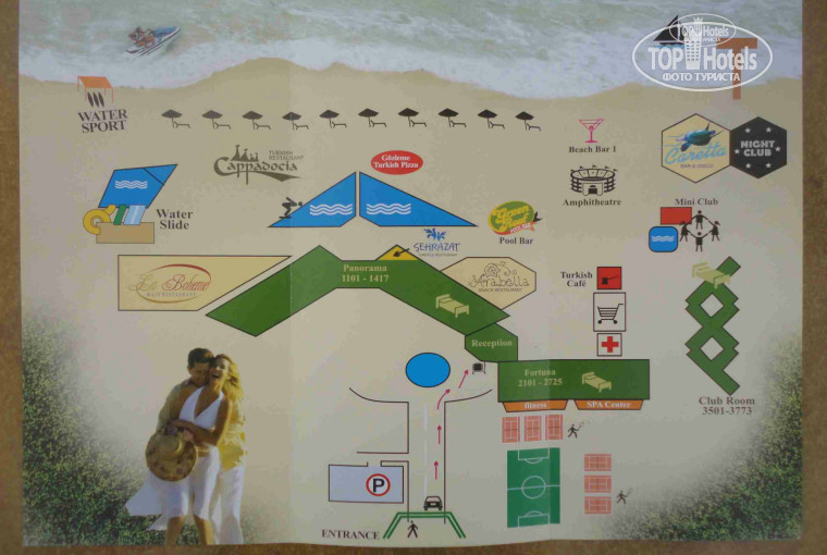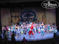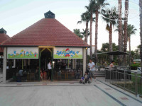 Детская анимация. Оценка 5. Очень похоже на русский вариант игровой комнаты, к которому мы давно привыкли на Родине. Что я имею ввиду… В прошлом году мы познакомились с одним из европейских вариантов: мини-клуб обнесен забором, калитка на электрозамке, кнопка которого - на высоте 1,75м, чтоб мелкие дети не открыли. Максимально безопасный инвентарь. Зелени на площадке нет, покрытие искусственное. Все игрушки где-то заныканы и выдаются по запросу ребенка. Сдавая ребенка, заполняешь мини-анкету и расписываешься в журнале – время сдачи, время возврата. Все под контролем. Чистота и хорошее кондиционирование. Все конкурсы внутри, за забор при мне их ни разу не выводили. Ну, наше чадо все равно оттуда сбежало и, несмотря на всю показную бдительность – никто не хватился. Тут - никаких заборов, вокруг площадки – только кусты, на площадке – трава, песок, деревья и пальмы. От побега детей охраняет объявление «правила мини-клуба», существующее исключительно на русском языке, смысл которого заключается в том, что если ребенок – убежал, то виноваты родители, которые не смогли ему доходчиво объяснить, что убегать не надо(фото этих правил я приложил). Сурово, но справедливо. Тут детей водят и на батуты раз в неделю, и за мороженым, и часть конкурсов проходит «за кустами» мини-клуба. Второе удобство – все-таки единый язык большинства деток. Когда нет большого выбора, с кем пообщаться, всё замыкается на аниматорах, возникает какой-то «культ аниматорской личности». Тут этого нет, русскоговорящих детей столько, что вполне можно найти себе друзей, подходящих по темпераменту и интересам. Общение с аниматором более ровное, более приятельское, никто на аниматорах не виснет. Тем более, что аниматор занимает их чуть более половины всего времени, остальное время они развлекают друг друга сами. За время нахождения там наш сын вступал как минимум в 3 компании по интересам. В одной смешанный состав мальчики- девочки, там всякие задания, которые надо выполнить, ролевые игры, правда, и игры кто смешнее всех назовет другого – тоже бывали, по мне так должно быть обидно, но они все лопались от смеха. Зачастую, игры, начатые в мини-клубе, продолжались на следующее утро на пляже, в том же составе, заставляя родителей выбирать места поближе друг к другу. В другой компании – чисто мужские игры в пиратов. С третьими – вечером, после закрытия клуба- бегалки/догонялки. Однажды дети, заигравшись, предпочли свою игру, а не конкурсы с аниматорами. По крайней мере, наш так объяснил, почему он с товарищем не участвовал в конкурсах. Да, была четвертая компания еще – телевизор с мультиками, этого бы поменьше. В общем, тут наш ребенок с готовностью в 14:30 уходил в клуб, а ближе к 17 я его забирал на горки. После ужина большинство возвращались на площадку уже с родителями и веселье продолжалось. Потом начиналась детская дискотека, большинство девочек бежало танцевать, а мальчиков – в бар, за безалкогольными коктейлями. Работа аниматоров на дискотеке тоже показалась более профессиональной, лучше организованной, сразу видно, что стада детей для них ситуация не шоковая, отработанная. Один сзади, 3-4 перед детишками. Возбужденных талантами своих детей родителей вежливо разгоняют с пятачка по центру от сцены. Мы не оставляли, но в принципе, пока взрослые смотрят развлекательную программу – можно оста