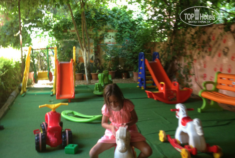 Территория отеля небольшая и это создает семейный уют, вокруг много зелени, дети чувствуют себя комфортно.