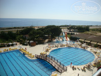 прилетели Лабиринтом - ночью, может быть поэтому доехали очень быстро + на комфортабельном автобусе. семьи с детьми засели первыми, нам достался номер с видом на море. Шум от машин ночью и от анимации днем замечали лишь первые сутки - потом привыкли и ничто не мешало отдыху. номер отличный, ванная очень чистая. очень хорошая анимация, дети были в восторге. мы подсели на большой теннис, играли каждый день. еда нормальная, всегда можно что-то выбрать вкусненькое, мне кажется даже на гурмана. с едой для детей не было проблем, и супы на обед, и каши молочные по утрам (это не считая хлопьев с молоком (холодным, правда, на самом деле, почему бы им не подавать к хлопьям теплое молоко?) картошки фри, спагетти, фрикаделек, которые вообще все дети едят с удовольствием) порадовало обилие сладостей, и нутеллы. в спа не пошли - дорого, в прошлом сезоне тоже в четверке цены были в два раза ниже. территоря большая, интересно гулять, море рядом, на море бар со снеками и напитками.
