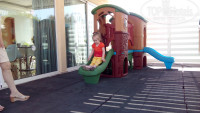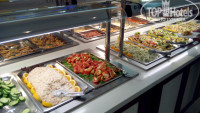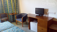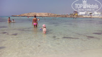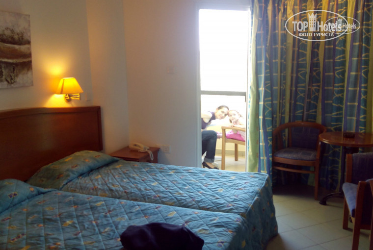 Но плюсы: это идеальная для отдыха с ребенком в это время года погода, европейская кухня и близость пляжа (отель практически на пляже и стоит), до центра - рукой подать. 5-10 минут минут до главной улицы, а там еще 15-20 минут и в самом центре. Мы короче за 20-25 минут доходили до луна-парка. Да, пляж сан-бич - это не нисси-бич. Там и вода голубее и водорослей чуть поменьше, но нам наш пляж даже больше нравился (людей меньше, вода такая же прозрачная, водоросли есть, но незначительными участками - не мешают совсем), хотя 2 раза дошли до нисси-бич (20 минут где-то). Но зато тем, кто в отелях на нисси-бич до центра на 20-30 минут дольше топать. На пляже - песок. Вход в море - песок, пологий достаточно далеко, дно - песок. На пляже спасатель и лодочная станция с водными мотоциклами, катамаранами, парашютами и бананами (от 15 евро за 30 мин. на катамаране). Питание вполне утраивало, завтраки стандартные, 2 вида сыра, 2 вида брынзы, оливки, маслины, 2 вида омлета, 2 вида сосисок, 2 вида колбасы, 2 вида ветчины, бекон, глазунья, картошка-фри или печеная, филе рыбы пинированное, картофальные шарики, рыбные палочки, огурцы, помидоры, арбуз, дыня, мюсли (4 вида), йогурт, кетчуп, мйонез, типо аджика, 2 вида булочек, 2 вида кексов, круасаны, печенье, масло, джем, финики, фиги, курага, яблочный, апельсиновый, грейпфрутовый соки и вода, кофемат. Если что упустил, то уже не главное. На ужин 5-6 салатов (менялись ежедневно, но потом иногда повторялись) плюс нарезка овощей (помидоры, огурцы, лук, перец), макароны, рис, отварные овощи (стручковая фасоль, морковь), картофель-фри и еще какой-нибудь (жареный, печеный, отварной, в мундирах и пр.) 1-2 блюда из рыбы, курица, свинина, говядина или баранина, плюс нарезка домашней свежей буженины, фасоль или бобы, иногда паста, 4-5 соусов, фрукты (яблоки, апельсины, мандарины, персики, абрикосы, нектарины, сливы), арбуз и дыня, 3 торта, 4 вкуса мороженого. Но напитки только за деньги: кофе или чай (чашка) - 2,5 евро. Тем не менее даже для 2-летнего ребенка всегда было что выбрать поесть. 1 раз в неделю ужин можно поменять на обед. Обеды проходят в кафе на улице возле бассейна или в баре. Обеды по меню. Можно заказать бесплатно салат, горячую закуску (типо хот-дога или горячих бутербродов (пита с кипрским сыром и ветчиной), горячее на второе и десерт. Порции ну очень большие. даже к хот-догу и бутербродам кладут гору картошки фри и овощей, а сосиска в хот-доге сантиметров 30-35. Голодным здесь не остаться. Но напитки опять платно. За 4 евро в день, но минимум на 3 любых дня за заезд можно брать чайник с набором для чая и кофе (4 чайных пакетика, 2 пакетика кофе, сахар, сливки). Переходник для розеток выдают на рецепшионе за 5 евро под залог (при отъезде возвращают, поэтому покупать не нужно). Отель небольшой. Номеров 32-36 Столиков в ресторане тоже где-то 32. мест всегда хватает. Завтрак с 8 до 10, ранний с 7.00. Ужин с 18.00 до 21.30. Номера уютные. Мебели много: круглый стол и 2 кресла, письменный стол с телевизором, туалетный столик с тумбой, в прикроватный тумбочки, большой шифоньер с большим количеством вешалок (примерно 20), 2 больших кровати, ребенку поставили дополнительную кровать (типа раскладушки, но с толстым-высоким, как на кроватях, матрасом). В телевизоре 5 русских каналов: евроньюс, НТВ, охота и рыбалка, Россия24 и Первый (на 802 кнопке - не сразу найдешь). Кондиционер забавный, почти бесшумный, мощный. Включается к
