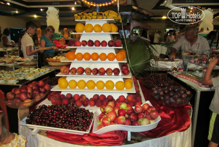 И еще: за ужином отдельно предлагают красное вино в бутылках (официант возит на тележке по залу). Пока я набирала еду мой муж уже с довольным видом дегустировал самое дорогое. Я спросила сколько стоит, муж ответил, что со слов официанта вино стоит 35 турецких лир, т.е. 10 евро. Ну вроде как и не дорого за бутылку 0,75 л. Когда официант принес квитанцию, а покупателю выдается 3-й экземпляр заполненный через копирку, там еле видно просматривались 35 ЕВРО. Ну, в общем 1800 руб. она нам обошлась. Потом разбирались. Мужа убедили, что сам дурак, а официанты якобы по-русски не понимают. Хотя когда подъехал он к мужу с тележкой вина - то по-русски сказал, что сегодня проводится фестиваль вина и т.д.
