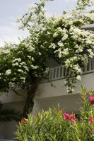О номерах. Мы были в двух номерах в разных корпусах. При заселении никаких двадцаток в паспорт не клали, положились на удачу (другие клали по 20 евро и были не особо довольны номером). Нам достался номер на первом этаже в двухэтажном корпусе возле пляжа. В номере был телевизор и холодильник, за которые мы ничего не доплачивали. Телевизор мы не разу не включили, т.к. на отдыхе он нам без надобности. Холодильник работал. Сам номер просторный, много воздуха, обстановка спартанская, балкон-терраса с видом другой корпус и цветущие рододендроны и бугенвиллеи. Такое расположение корпусов по-началу удручает, т.к. пялиться на соседние номера на отдыхе не особенно хочется, но оно позволяет иметь круглые сутки приятную тень и прохладу. Проблемы номера: комары (по вечерам устраивали предварительную охоту), вода в кране опресненная, т.е солоноватая, в нашем номере почему-то вода шла в основном горячая, а холодная - тонкой струйкой, бачек унитаза подтекал. На утро после заселения обратились на ресепшен, нам тут же прислали горничную и двух сантехников, они слегка исправили проблему очень горячей воды, но не смогли решить проблему бачка. Мы забили на эти нюансы и радовались отдыху.