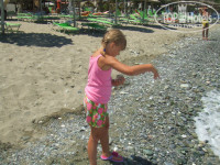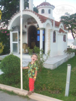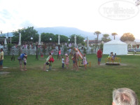 Отдельно - про питание. Я не знаю для кого это питание было однообразным, но и я и муж остались очень довольны. Посудите сами - на завтрак - яйца вареные, яичница, омлет (причем завтра уже с другими ингредиентами), блинчики, бекон, колбаса и ветчина, помидоры-огурцы, творог, фрукты в сиропе и просто свежие, несколько видов выпечки, булочки и печенья, сыр тоже нескольких видов, не считая фета, различные хлопья и кукурузные шарики. На обед - всегда был суп, несколько видов мяса (свинина и птица, говядина и даже кролик), рыба была всегда. Да, омаров не было, но осьминог был. Макароны, спагетти, картофель фри и тушеный, горошек и бобы, овощи обжаренные в кляре и фритюре, сырные шарики, стручковая фасоль, баклажаны, свежие овощи, арбуз, дыня, персики, нектарины, сливы, два-три десерта и конечно же мороженое. На ужин - практически то же самое, что и на обед, плюс еще какие-нибудь чудо-запеканки и соусы, и пироженки. Из напитков - чай, кофе, вода, кола, фанта, спрайт, швепс и порошковые соки, пиво, вина розовое, белое и красное, узо, бренди и еще какая-то разновидность местной водки. В общем, дети у меня всегда находили для себя что-то приемлемое (4 и 6 лет).