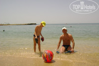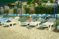 Пляж- хороший , песчаный .С уровня по колено и до по горло камни , но в общем они не напрягают. Метров 30 отплывёшь , там большие камни под водой, на них интересно постоять . Но ощупь они мягкие , как на ковре стоишь. У правого выхода на пляж вода обычно по прозрачней, наверно это связано с тем , что камней в этом месте больше. Лежаков всегда всем хватало. У бассейна мы лежаки не занимали , оставляли всё на лежаках у моря и ходили на бассейн. Если пройти вправо , через лес (идти 5 минут) там есть чудесная бухта , там галечный пляж и вода совсем прозрачная . У камней интересно поплавать с маской. А в лесу живут большущие ящерицы))