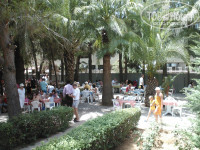 Не понравилось : сок из автомата попробовали в первый день , больше пить не стали ; кофе из автоматов- как то плохо организовано, оно часто заканчивалось, автоматы стоят как то в кучке и к ним часто не подобраться, потом их как то переставили ; на самом деле часто возникали очереди за оладьями, блинами не говоря уже за мясом на углях . Но конечно если придёшь по позже , то очередь уже рассасывалась ; десерт-пирожные были все какие то однообразные только разного цвета. Почему то никто не писал в отзывах , что обед проходит в павильоне у бассейна и можно сесть за столики под огромными пальмами. Понравилось , что было много фруктов, арбузы каждый день.