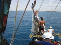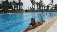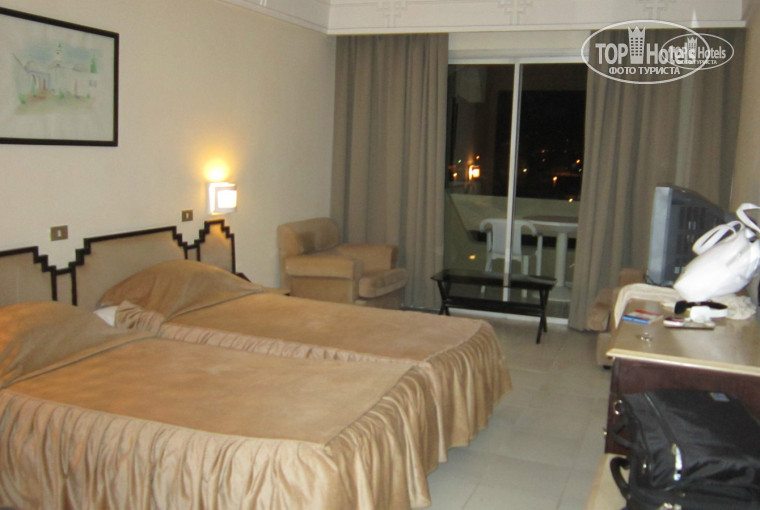 По соответствию цена-качество твердая 5. Впечатлила страна, очень понравилось гулять по Набелю вечером: красивая архитектура с мазаикой, пальмы, ласковое Средиземное море, приветливый народ, шопинг по местному рынку (кожаные сумочки вполне приличного качества на наши рубли от 300 рублей) и магазинчикам не оставили равнодушной. ..Вернусь к отзыву. Сам отель очень большой, большая территория прилегающая, очень большой и чистый бассейн олимпийский, свой пляж.Номера очень красивые и просторные в восточном стиле с террассой (у нас был вид на море , город и аквапарк отеля) полотенца меняли каждый день, но пыль все-таки присутствуют. Питание нормально, но без прикрас и однообразное достаточно: баранина, индейка, картофель, рис, овощи тушеные, омлетики, сыры, разные салатики, на десерт очень вкусные арбуз и дыня и нежный бисквит, эклерчики, вечером повар готовил овощи в кляре , как-то был стейк из свинины (стейки готовить они не умеют).Вино и пиво понравилось, сколько ни пили, все шло отлично и голова не болит:-D Персонал приветлив и доброжелателен, всегда поинтересуются как дела по-русски, анмматоры -ребята молодцы, очень веселые, скучно не было ни днем у бассейна, ни ночью (аэробика, акваэробика, местный танец учили, конкурсы, викторины..все это было).Для нас было вопросом, вечером пойти погулять по городу или провести время на территории отеля с музыкой, анимацией))) Понравился мини-аквапарк с горками, они работали с 11 до 13,00 примерно, есть как детский бассейн с горочками, так и для взрослых горки побольше. Класно делают массаж в спа-центре при отеле, персоналу отдельное спасибо.В общем, наша компания осталась очень довольна отдыхом в Тунисе,планируем вернуться в сентябре туда.