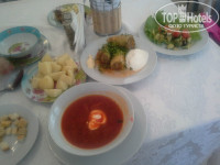 Я люблю баклажаны, здесь они были ежедневно в разных видах. С тушёной говядиной - очень вкусно! Достаточно салатов, как овощных типа капустного или греческого, так и сложных майонезных. Последние часто предлагались не только на обед, но и на ужин.