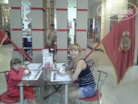С 9 до 20.00 работает детский клуб - принимают детей не аниматоры, а педагоги, под роспись родителей. Обязательно делают какую-то поделку (думала прикупить ещё один чемодан для дочкиных инсталляций). Малыши каждый раз, уходя, получают сладкий приз. Есть питьевая вода, не нужно думать, что твоё чадо страдает от жажды. Впечатлило помещение мини-клуба - большое, просторное, с хорошей мебелью, игрушками, ковриками для игр. Отдаёшь ребёнка и бежишь в магазин или на рынок со спокойной душой. Спасибо большое Светлане Тимофеевне и Татьяне Николаевне.