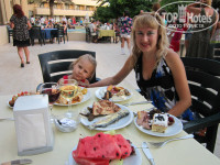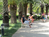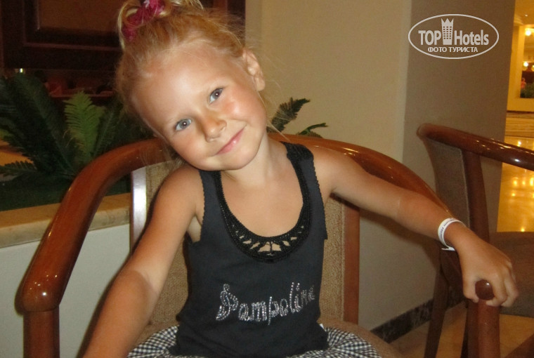 Отдыхали с мужем и ребенком трех лет с 28.06.14 по 11.07.14. Каждый раз, новое путешествие кажется лучше всех предыдущих и это не стало исключением. Приехали в отель в пол-девятого. В девять уже заселились. Номер изначально оплачивали с видом на море. Вид просто сказочный!Анимация была слышна, но так как она заканчивалась в 23 часа, то не критично. Я и ребенок засыпали и под нее! Номер был на пятом этаже. Кондиционер работал отлично, не шумел и ночью даже замерзали. Вся мебель в отличном состоянии, не новая, но и не убитая. Немного огорчила ванная без пробки, дите любит поплескаться перед сном. На ресепшене сказали, что пробки не положены, зачем тогда тратить место на ванную? Кормили, как на убой. Огромное количество салатов, овощей, фруктов: сладкие апельсины, персики, нектарины, яблоки, абрикосы, дыни, арбузы, черешня; из гарниров: картошка фри, жареная картошка, пюре, макароны в различном виде, каши. Было много тушеного мяса: курятина, индюшатина, говядина; рагу с овощами, рыба: скумбрия и дорада, супы, сладкое на любой вкус. Было жалко поваров, которые готовили что-то при туристах, особенно блинщика. Народ, вы что, дома блинов не наелись?! Мужчина орудовал с 2 сковородками, а в очереди можно было простоять пол-часа! Отдыхающие набирали по 10 блинов в одну тарелку, пока блинщин не озверел и не ограничил выдачу до 5 штук в руки! После еды, официанты выбрасывали целые горы этих блинов просто в мусор. Не буду в который раз возмущаться нашими туристами, у которых включается программа "все включено", люди неисправимы. Скажу еще об обслуживании. Начиталась отзывов о грязной посуде и плохом обслуживании. Так как мы пробыли в отеле 2 недели, то успели познакомиться с двумя сменами. Так вот, одна просто на высоте! Ребята работали расторопно, вся убирали, быстро сервировали, и еда при них была отменная... Но вот заступила новая смена и лицо отеля изменилось: посуда грязная, приборов не допросишься, пару раз была испорченная еда, а нарезчика арбузов туристы вообще прогнали, на его место заступил шеф, который весь вечер вырезал сердечки из арбузов. Хотелось бы, чтобы руководство отеля похвалило работу смены, в которой есть официант Амин. Огромнейший ему привет от голубоглазой блондинки, Алисы, трех лет от роду! Эта смена работала с 3.07 по 6.07 и заступила на работу 11 июля (праздник в день нашего отъезда). Выезд был в 5 часов вечера, поэтому мы спокойно доплатили за номер на ресепшене (10$ за час) и продолжили радоваться отдыху. Ребенку понравилось море - прекрасный песчаный заход и чистая вода, в отличие от соседних отелей. Из бассейна с детской горкой, Алису вообще было не вытащить. Территория сказочная, тенистые пальмовые аллеи, разноцветные олеандры. Места, что у бассейна, что у моря можно было найти всегда - еще одна благодарность пожилому мужчине у бассейна, который заведует лежаками. И, конечно, огромный плюс в расположении отеля. Рядом городок с кучей магазинов и ресторанов, мы даже в Аланию не ездили для шопинга. Кстати, из отеля 3 раза в неделю ходит автобус до Алании бесплатно. До Алании 20 минут езды. Мы брали 3 экскурсии у отельного гида и не пожалели. Во-первых, ребята-турагенты "через дорогу" не возили в дино -парк, о котором ребенок вспоминает ежеминутно, во-вторых, плавание на пиратском корабле Viking тоже оставило неизгладимое впечатление, в-третьих, на обзорной экскурсии по Ала