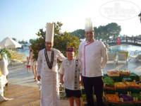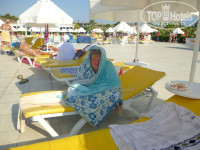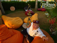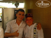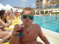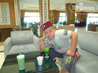 Вернулись мы их этого отеля 14 июля. Решила немного остыть, прежде, чем написать отзыв. Итак: по прибытии я положила 10 долларов в паспорт и подарила девушке на ресепшене коробку Коркунова. Заселили минут через 10. Не в забронированный номер с видом на землю, а в номер с видом на море. Номер большой, с отличным видом. На простынях имелись дыры. Поменяли их за 7 дней один раз. Хотя я в первый день оставила доллар и шоколадку. Потом каждый день оставляла по шоколадке. Убирали нормально. Цветуёчки из простыней укладывали. Мы заранее заплатили за сейф, но он не работал. Вызвали мастера. Дали доллар. Как оказалось, проблемы с сейфами почти у всех. Кто не брал сейф, у того была проблемами с входной дверью. У многих через 2 дня после при езда начинала течь сплит-система. В том числе и у нас. Но меня задолбала эта ситуация. Я просто на ночь подкладывала под струю воды подушку-думку, а днём просушивала её на балконе. Фиг им, а не доллар! Я снимала переднюю панель сплита и фильтры. Они трубу с конденсатом, по-хлджу как то присоединяют! Сплошное вымогательство. Пульт от телевизора работал плохо, тоже требовал доллар. Но я поймала русский канал и только его и смотрела. Ещё один доллар зажала. Работала только кнопка на включение-выключение. И такая фигня не только у меня. Дальше: бассейн. Поручни ходят ходуном. Того и гляди, свалишься при попытке выбраться вместе с ними в бассейн. Всего 3 ступеньки. Из 3 горок работают 2. И на время их работы ( по 2 часа утром и вечером) привозят людей из другого отеля! Это реально бесит! Я уже второй раз с таким сталкиваюсь. Вырастают очереди, люди толкаются.... Мой сын в первый же день упал на плитке (другого покрытия на территории нет!) и ударился головой. Потом он сильно порезал ногу на лестнице на горку. У других дети пропарывали себе ногу в самом бассейне с горками, резали в бассейне с джакузи. Там края ступенек не обработаны! Бары. При бассейне в баре самый взрослый бармен самый наглый. Ему всё не так. Сколько бы раз доллар ему в стакан ни засовывала, морда всё равно кирпичом. Как будто он нам платит. Был молодой, очень милый. Мы подружились. Один бармен наглый. Откровенно клянчил бакшиш Стаканы реально одноразовые. Но есть и твёрдый пластик. Я сразу раздобыла 2 больших и 2 маленьких. И никому не отдавала. Один раз уборщик увёл их у меня, но я его в баре догнала и мне их вернули. И помыли. Аниматоры молодцы. Весь день пашут. Большое им спасибо за то, что развлекли сына.Пляж неблагоустроенный. Пантона не было. Потом появился. Пластиковый. Бело-голубой. Атас. В море кто то кусается! Меня кто то тяпнул прям за свежую мозоль! Остаётся после укуса 3 точки. Мы всем пляжем так и не выяснили, что это за тварь... Дорожка из досок прерывается на середине пляжа и приходиться пробираться по песку с камнями. Очень неудобно. Зелени мало. Скучно. Выйти реально некуда! Отельный гид Рауф - самодовольный тип... Отдыхают русские, украинцы и турки. Был даже один поляк с сыном! Надоедливый типчик... Питание нормальное, вкусное, но разнообразием не отличается. На завтрак надоело лопать сыр с помидорами черри. Омлет был один раз. Варёные яйца осточертели... Сушёный инжир тоже был каждый день вместе с урюком и изюмом. Мяса было много, морепродукты. Пюре порошковое. Фрукты: персики, нектарины, чернослив, черешня (подтухшая), абрикосы. Короче, я всё время хотела домой. Далеко не 5*. Забыла 