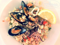 За что отдельное спасибо ресторану - это за вяленые томаты, за оливковое масло в нескольких вариантах, настоенное на травах, за настоящий вкусный хлеб собственного производства, за великолепный мягкий козий сыр (который треугольниками резали, люди, кто знает название, или узнает, напишите мне в комментах, плииз) и мою любимую рукколу!