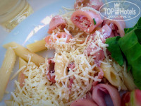 На обед и ужин всегда 2 вида супа, готовили и борщ, и рыбный суп, и овощной, и привычные для Европы супы-пюре из морепродуктов, грибов, фасоли, цв.капусты. Думаю - даже маленьким деткам можно спокойно давать такой супчик. Каждый раз что то готовили на гриле - рыбу, мясо, королевские креветки, осьминоги, курицу в сладком соусе с ананасами, котлеты, мини-шашлычки. Каждый день по мимо гриля что-то запекали в духовом шкафу ( по типу как шаурма готовится) так подавали говядину, индейку, курицу, баранину и свинину. Каждый день повар при вас готовит пиццу, должна отметить, что пиццу очень вкусную! Не в каждой московской Пиццерии такие вкусные пиццы! За этими блюдами, которые готовятся непосредственно в зале всегда образуется небольшая очередь, но это когда отель полностью заполнен, в середине июня такого не было, а к середине июля появились очереди. Креветок раньше можно было взять сколько хочешь, сейчас же по 2-3 шт на руки))) оно и понятно, я сама лично видела, как на столах остаются горы не съеденных креветок, люди берут больше, чем могли бы съесть и официантам это все приходится выбрасывать с сожалением.. К блюдам в лотках в свободном доступе нет очередей, там тоже можно найти массу вкусных блюд - перечислю, что больше всего понравилось и запомнилось: манты, пельмени, баранина на кости, кролик, курица в сладком соусе, вареники с картошкой и типа творогом, морепродукты: кальмары, мидии с ракушками, и морепродукты в пермешку с рисом - осьминожки ( сколько я съела осьминогов здесь, я наверное, за всю жизнь столько не съела) креветки коктейльные, мидии и тд, вареная кукуруза, горошек, брокколи и цветная капуста, запеченый картофель крупными ломтиками, различные виды мяса под различными соусами, рыба в белом соусе...свежие овощи- перец, помидоры, огурцы, зелень! Каждый день дыни и арбузы, все остальные фрукты чередовали, но одновременно всегда было 5-6 видов фруктов - были бананы, персики, абрикосы, нектарины, сливы, яблоки, бананы, груши, а в конце июня постоянно была черешня! Десертов выбор не большой, но у нас до них дело почти никогда не доходило! Мороженое целый день!